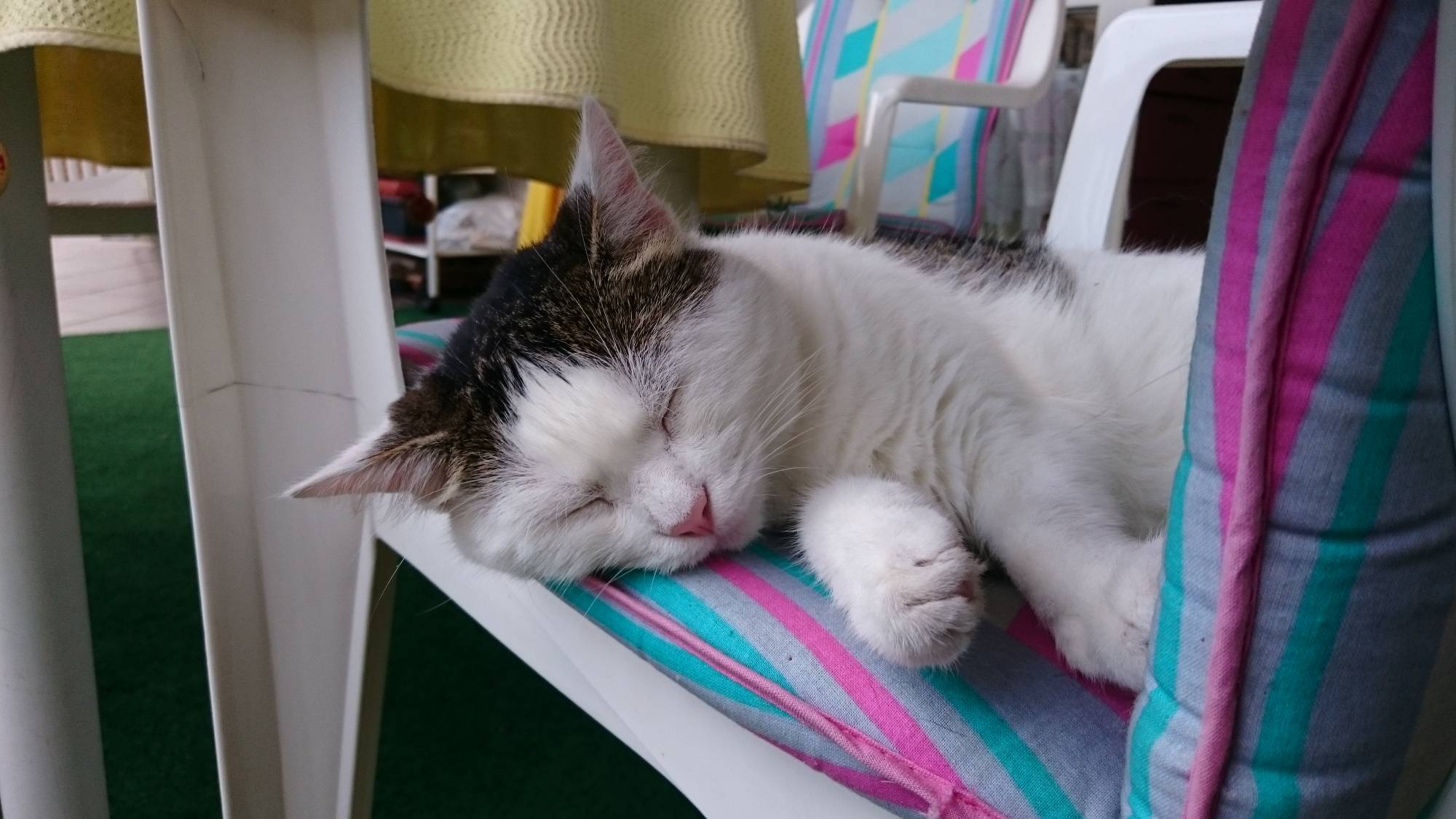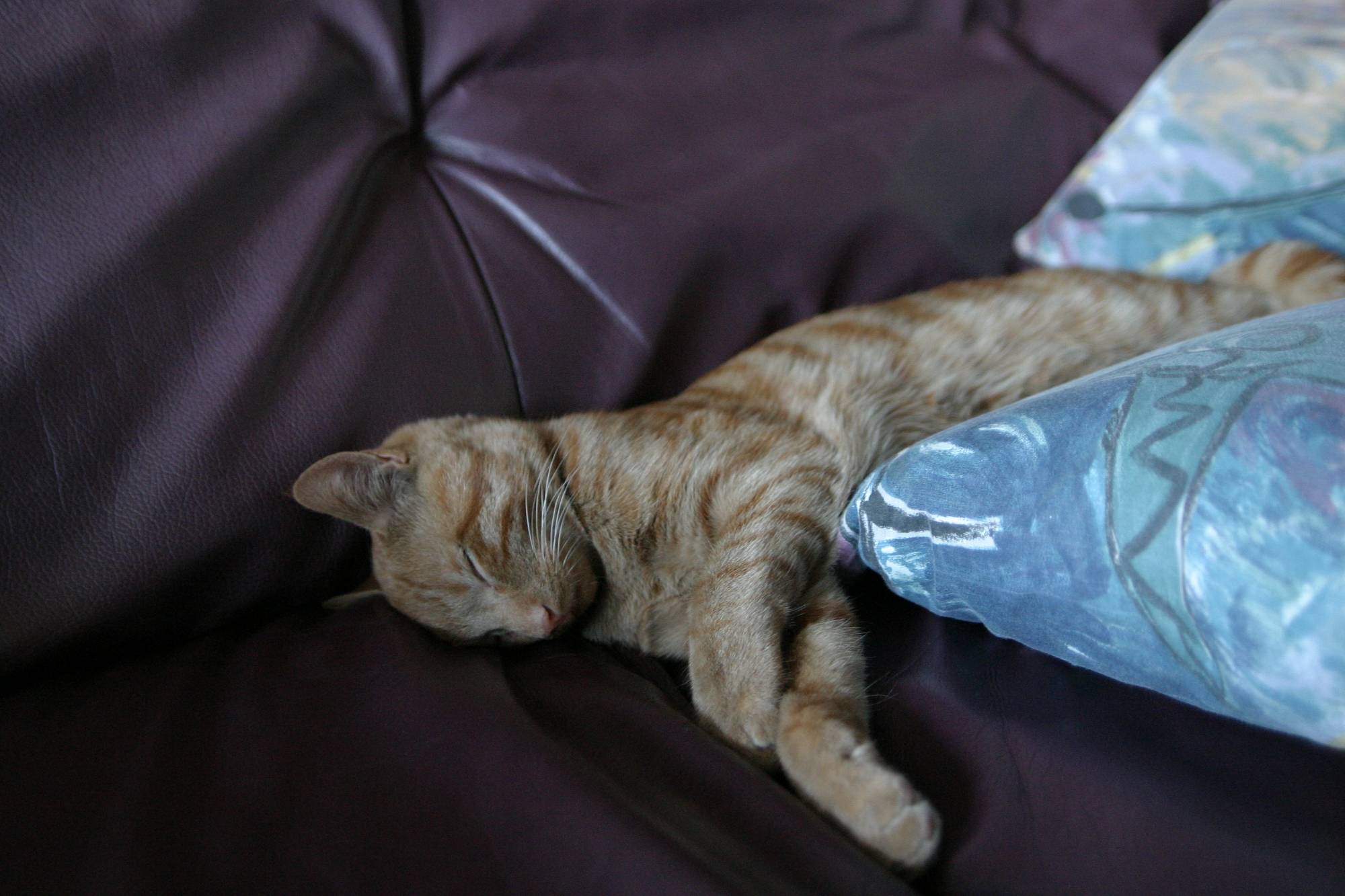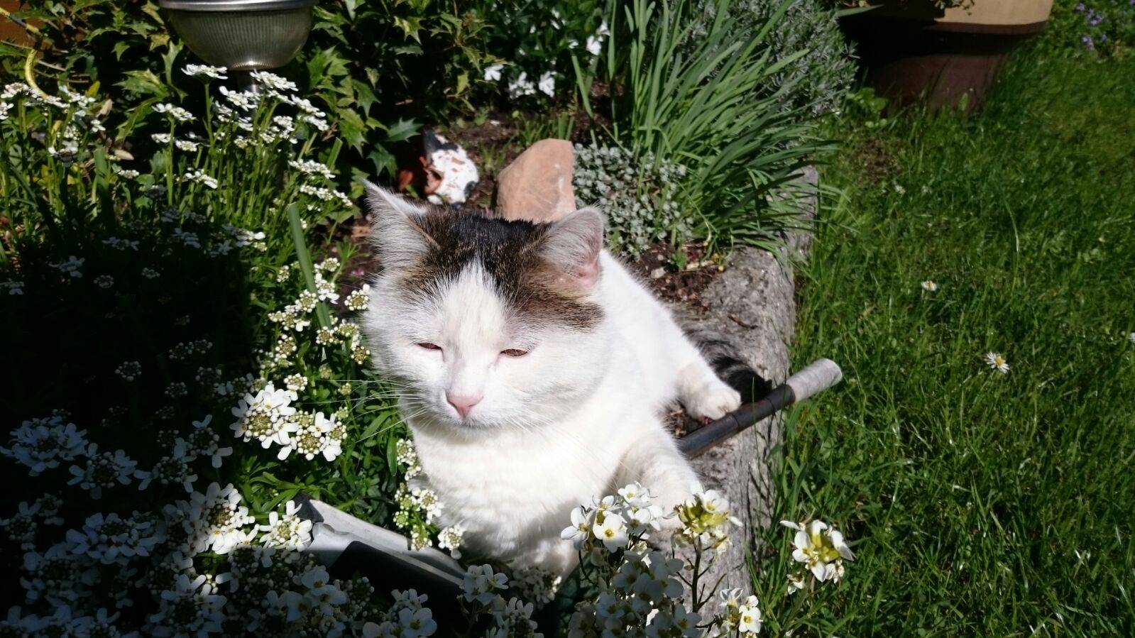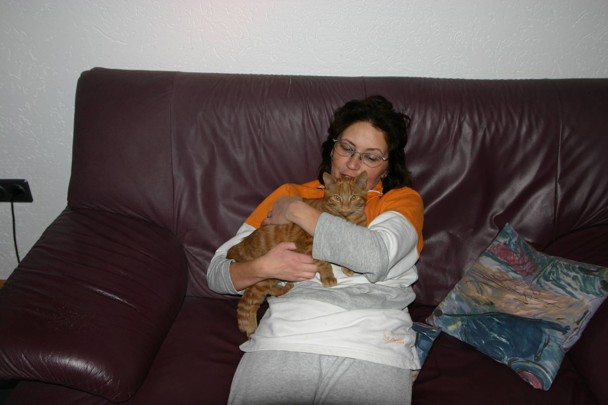 Im Oktober 2005 lief uns eine junge Katze zu. Beim Fließen des Gartenhauses sauste plötzlich ein roter Kneuel durch den Fließenkleber und ging nicht mehr weg.